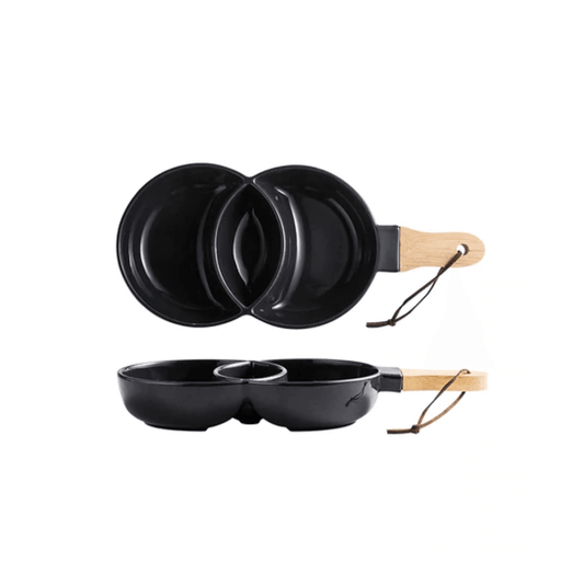 Stylish Ceramic Snack Tray with Wooden Handle for Dips and Treats, 12x6